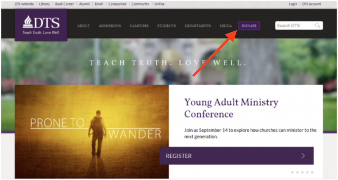 A Texas seminary school as trying to source more donations to keep their organization well-funded. And in order to get more people’s attention, they put their main CTA (to donate) in their navigation.